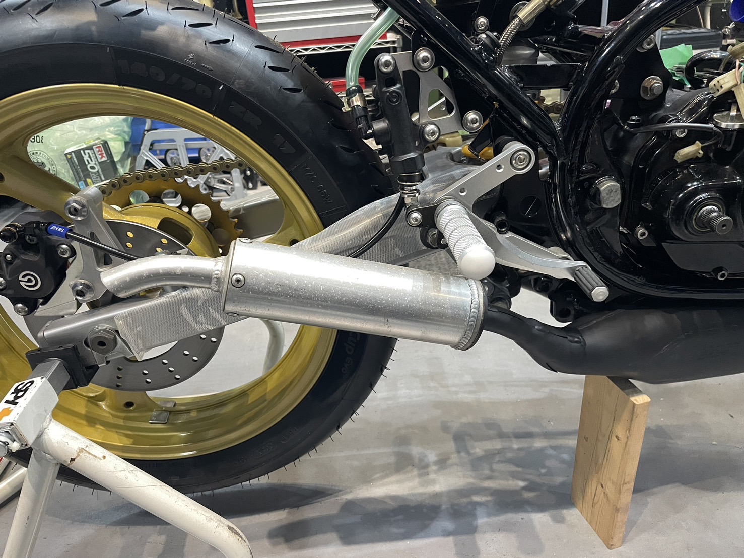 今更 チャンバーにステーを溶接するのも面倒だし バンドタイプのサイレンサー固定用ステーは個人的にカッコ悪いと思うし・・・・ どうしましょ
