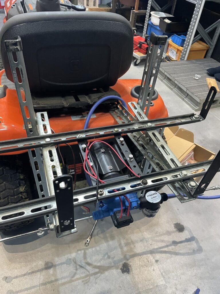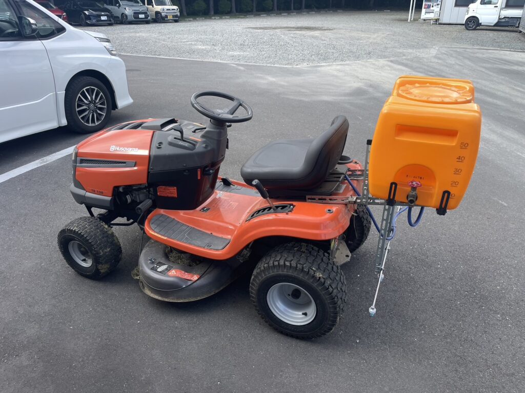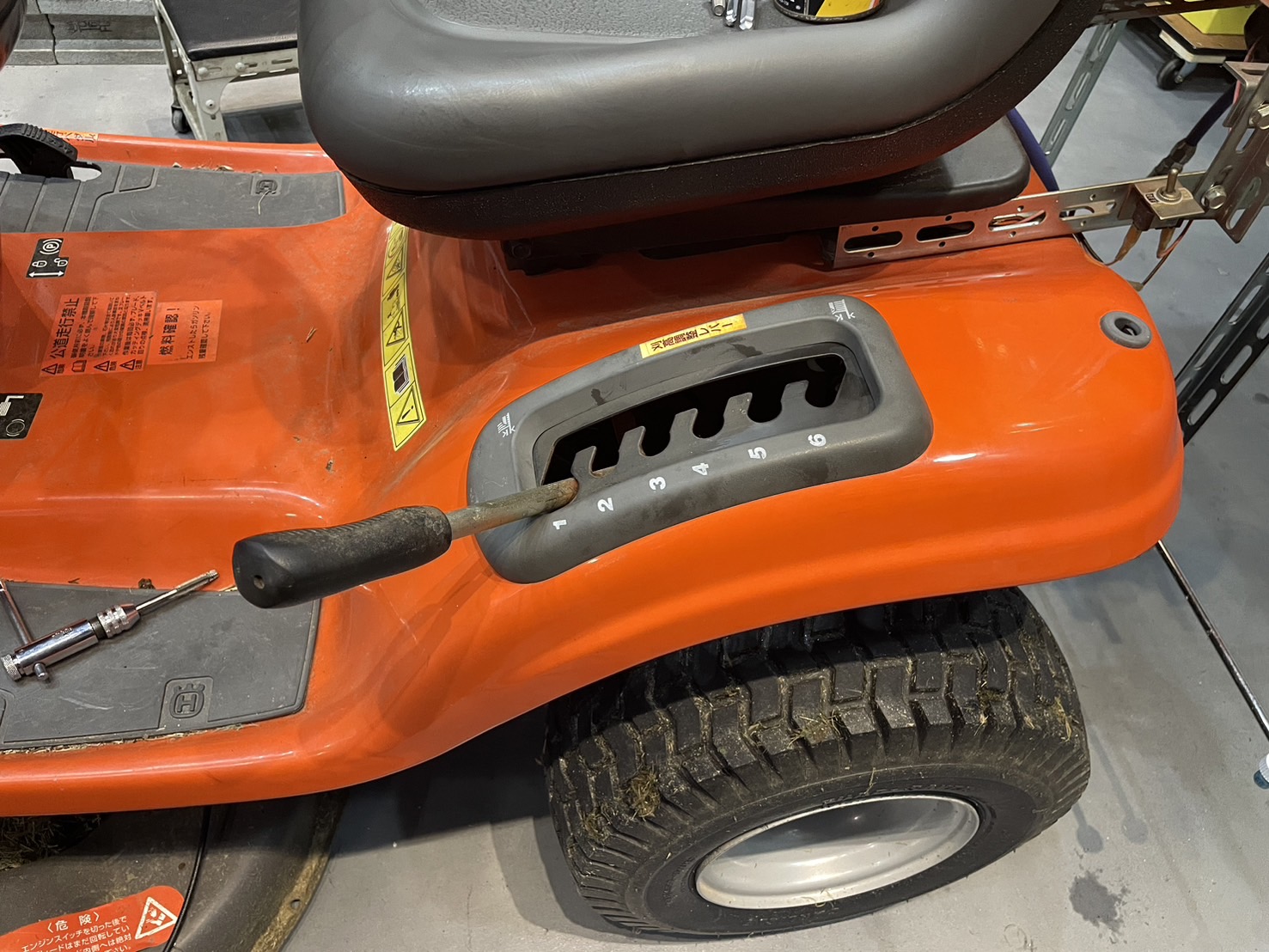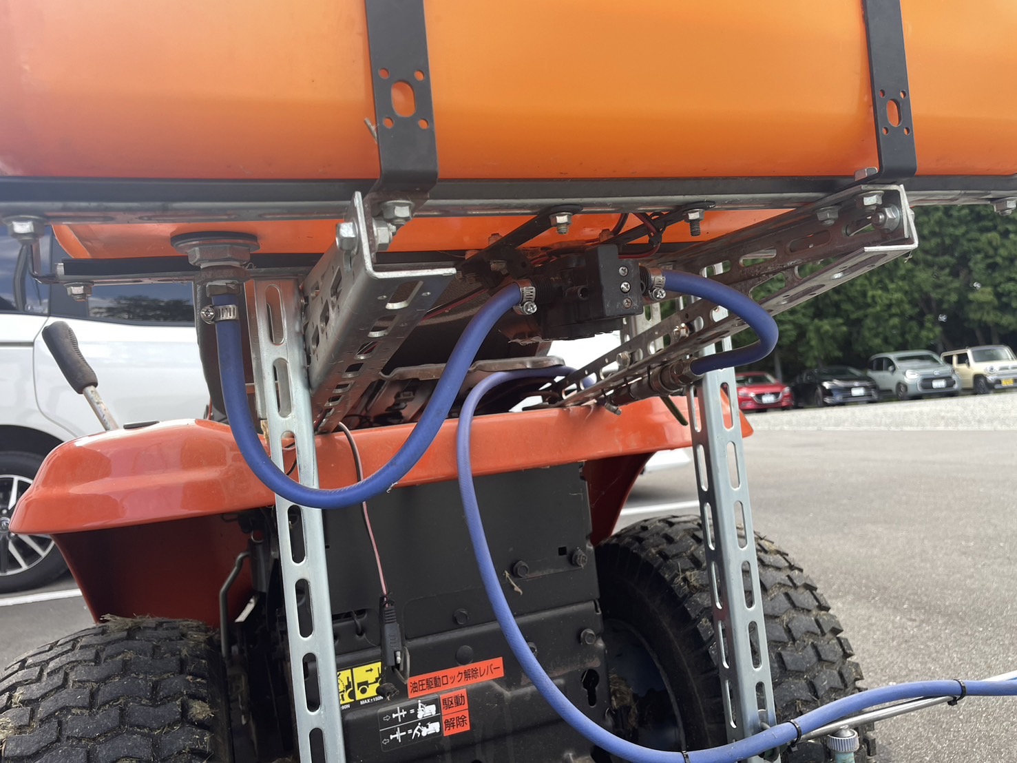帰ってから 午後は乗用草刈り機の農薬散布ポンプの交換作業です