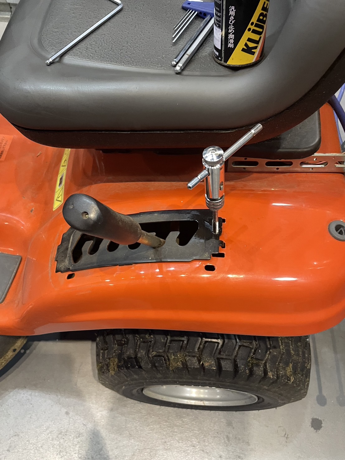ポンプ交換の前に 前回途中だった刈り高さ調整レバーのプレート修理