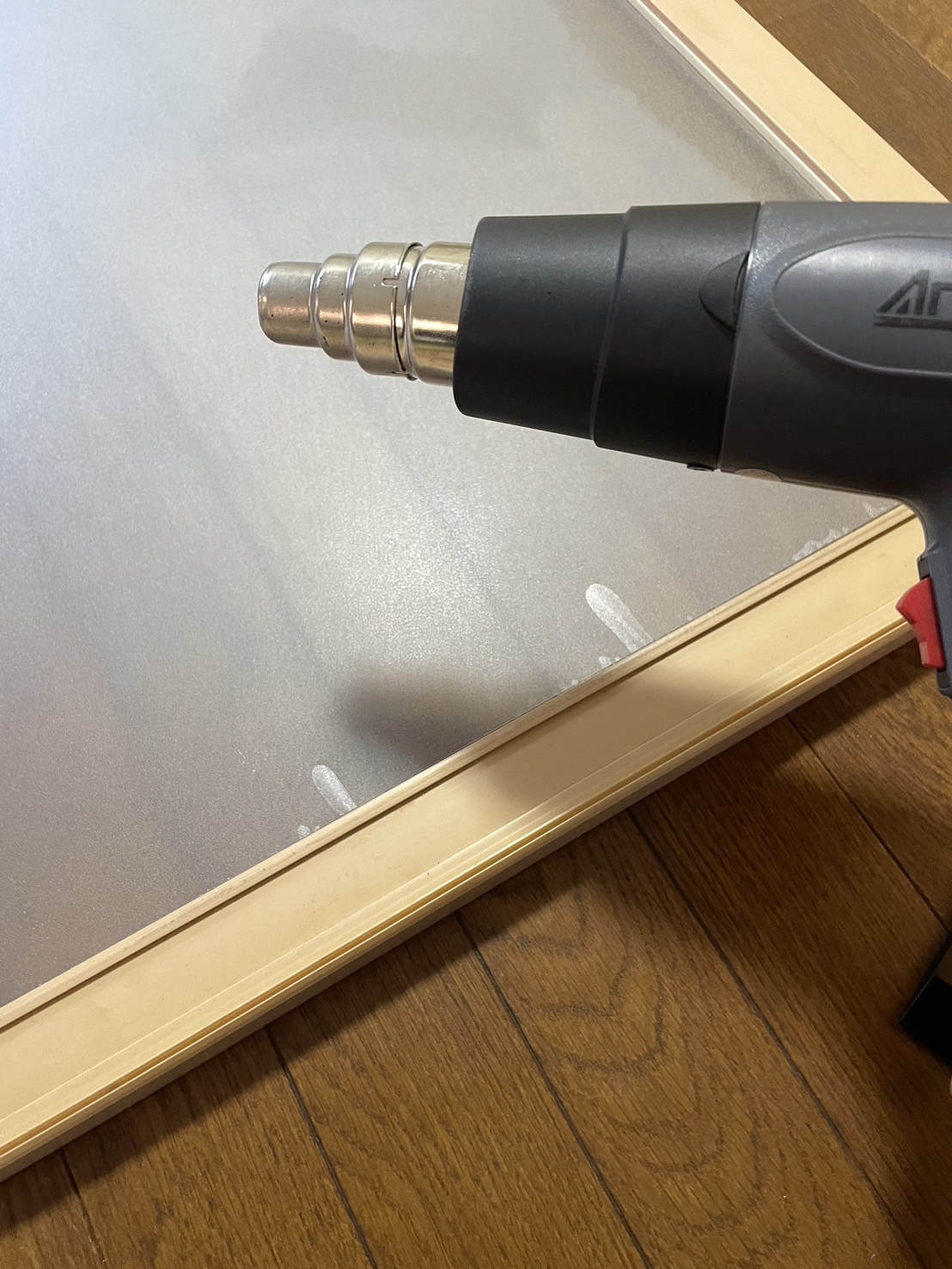 ヒートガンであぶって補正します