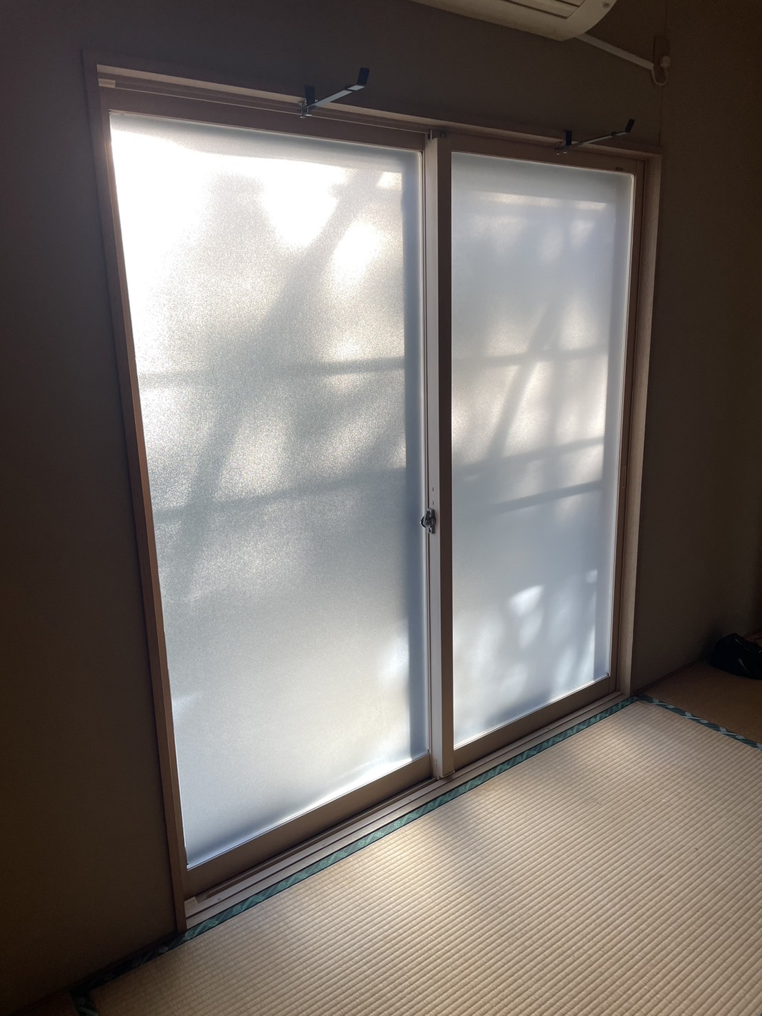 中丸見えというのも 防犯上如何なものかと思いまして 例の曇りガラスフィルムを購入