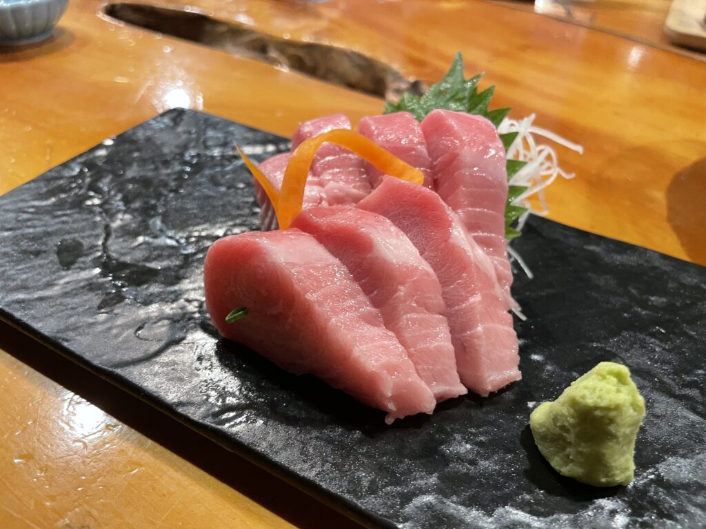 まずは マグロ 中トロ刺しでも食べてください