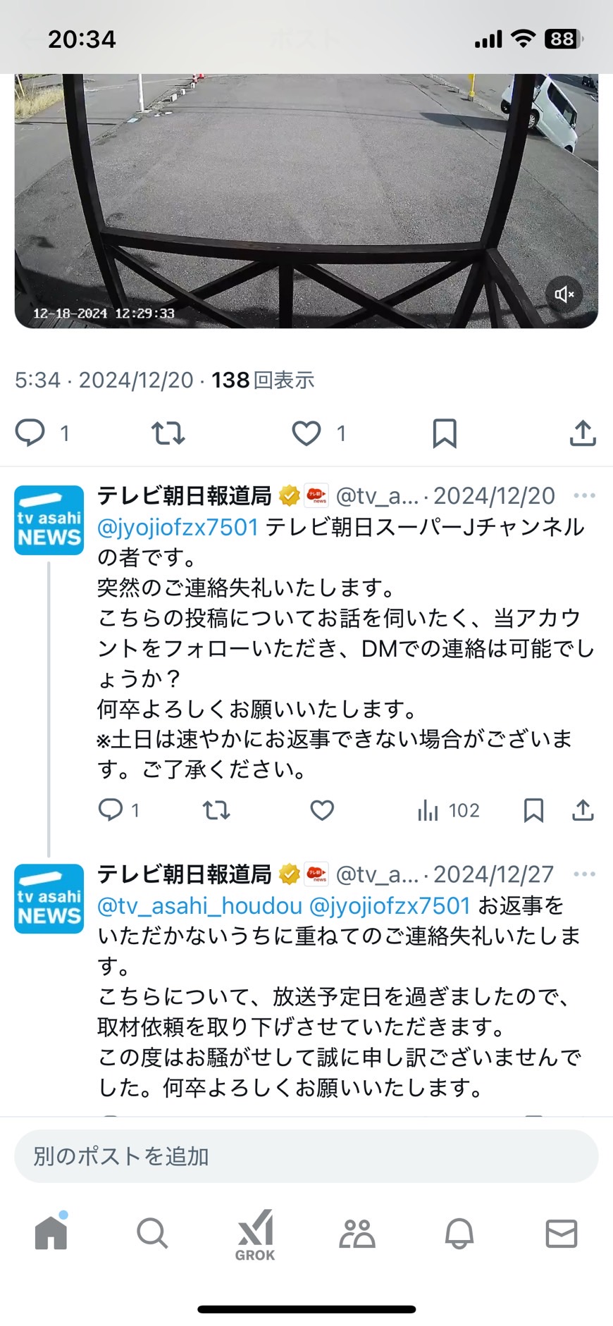 もしこれが12/20に確認していたとしても 取材には応じる気も無いし ましてや動画を提供する気もありません