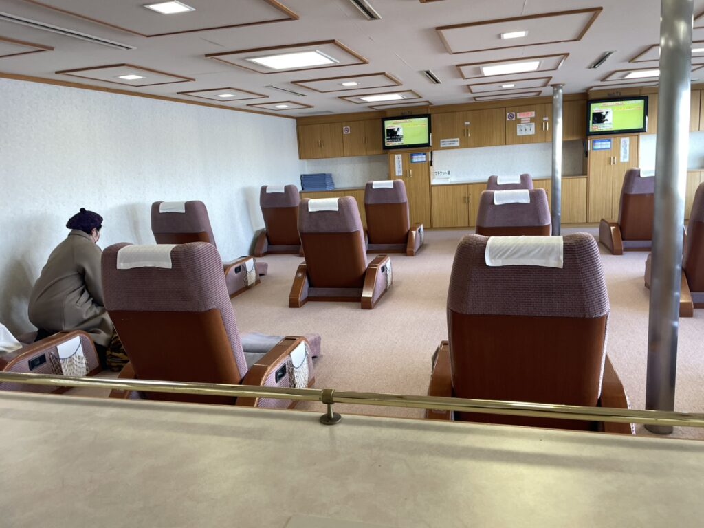 片道2時間半 映画を見ながら のんびり船旅です