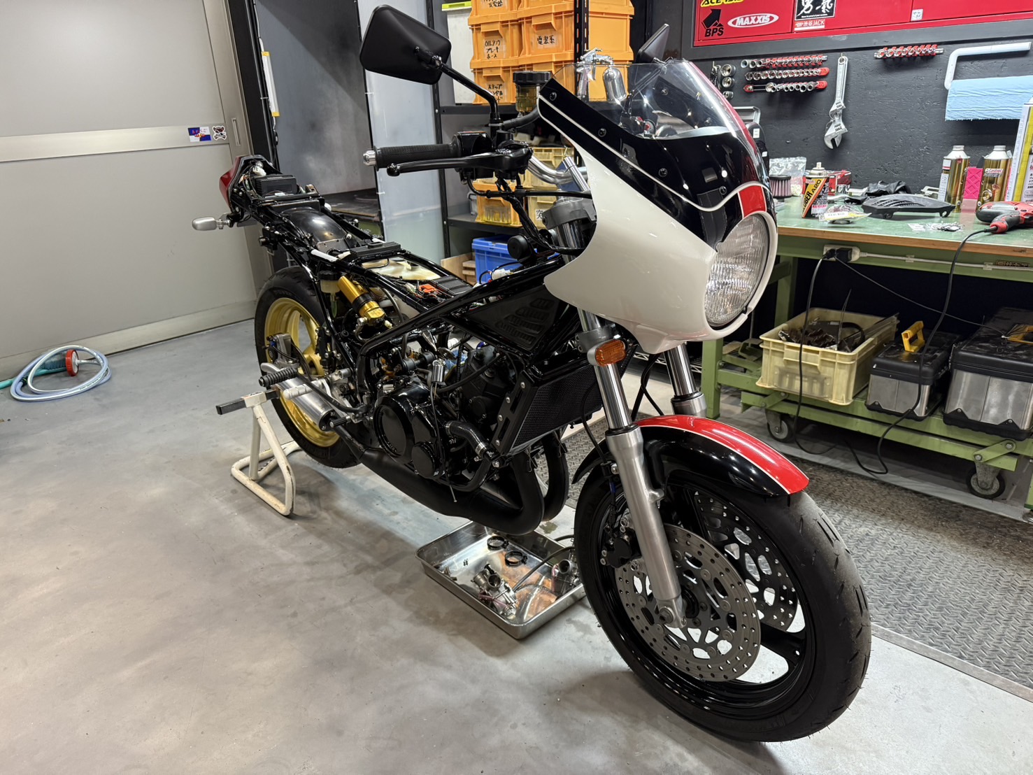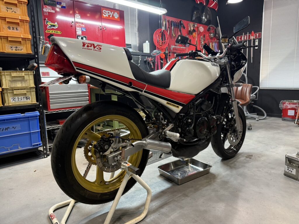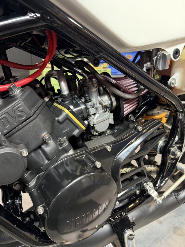 吸気。 先週バラした状態で保留のRZ250R 頼んでいたインシュレーターが 思いのほか早く届いたので早速取付 ついでにキャブと干渉していた部分を カッターでちょちょっと削りました 1時間ほどで作業は完了 超強風にて 表には出せず ガレージ内で酸欠になりながら しばしアイドリングで調子を見る 問題ないようです 週末は天気が悪いみたいなので 慣らしはまた今度・・・・ こんな調子じゃ 慣らし終わるころには バイクシーズン終わっちゃうよ(汗) そろそろRZV500Rもオイル交換しないとなー