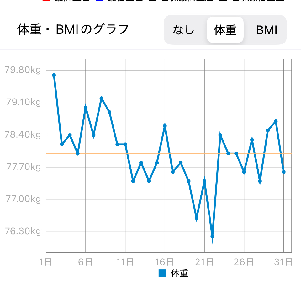 月中最低 76.2㎏(3㎏減まで盛り返しました)