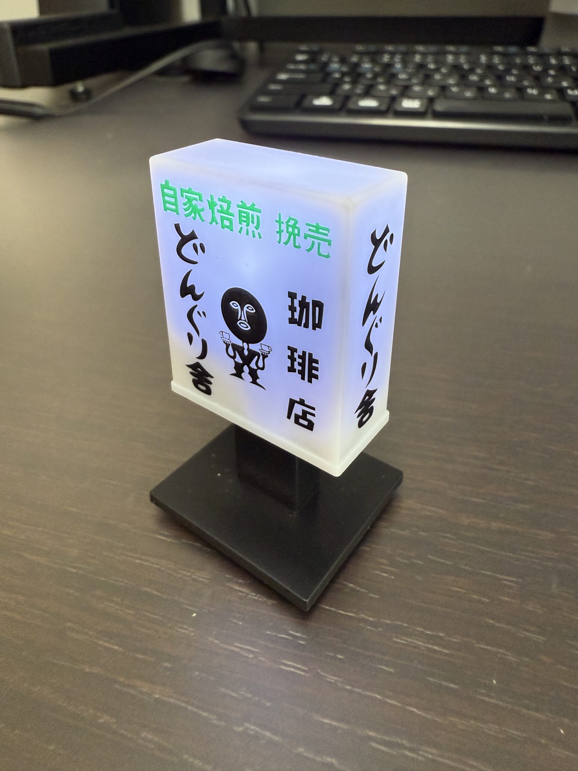 玩具。 東京のハンズで 何気なく購入した玩具の看板 カバンに入れておいて 忘れてました 何が出るやら お楽しみ 開けてみたら「どんぐり舎」の看板が出てきました それも 光るぞ ガラクタが また一つ増えました(笑)