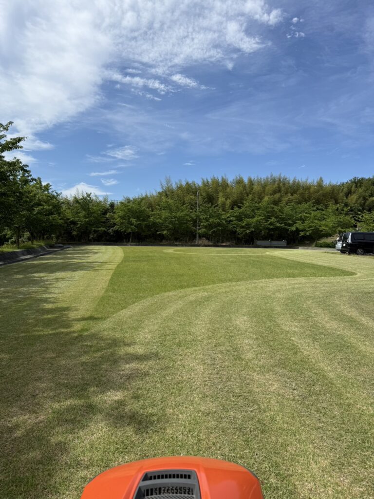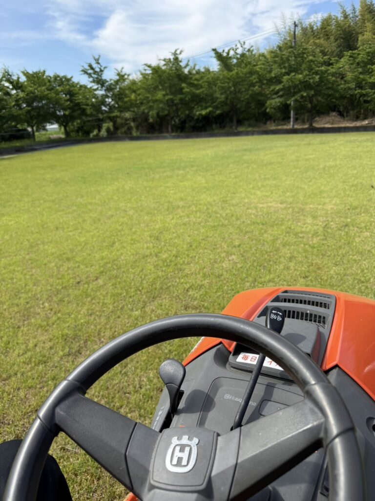 早暑。 梅雨に入った途端に猛暑です 芝たちもグングン伸びます 弊社のフェラーリこと ハスクバーナ乗用芝刈り機で作業開始 涼しい午前中に済ませます 今回は農薬散布無し 刈込オンリーで1時間ちょっと 出張等で刈るタイミングが少し遅れました 暑くなる前に済ませておいて良かった 福島の本当の空のもと 青と緑のコントラストが気持ちをリフレッシュさせてくれます 今年も負けられない戦いは続きます