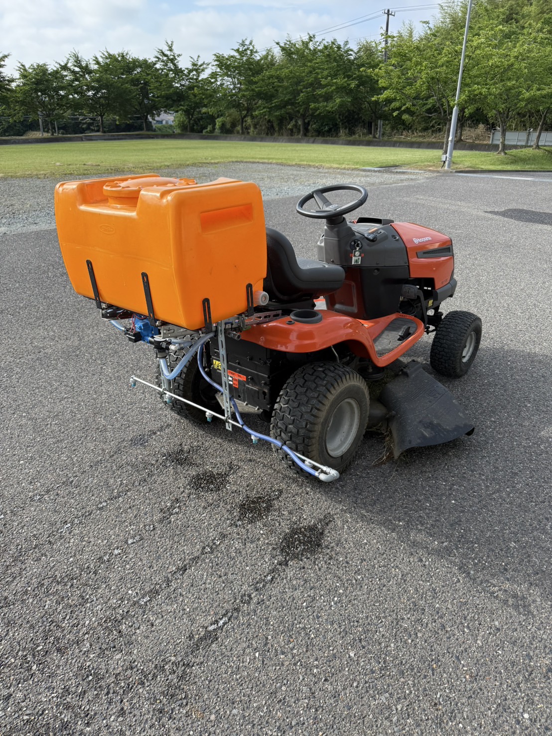 うちのフェラーリこと ハスクバーナ乗用芝刈り機には 自作50L散布装置が搭載されています