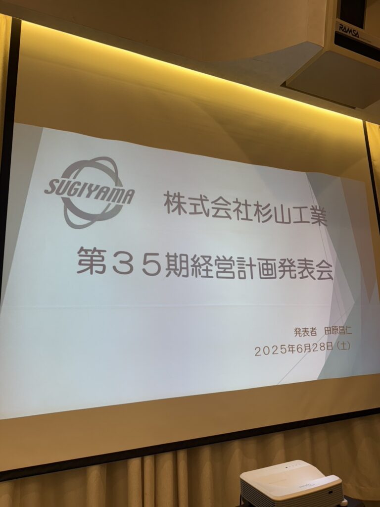 覚悟。 株式会社杉山工業 第35期経営計画発表会が無事に行われました T原専務をはじめ 幹部の皆さん 大変ご苦労様でした 1部では T原専務の立派な発表 素晴らしかったです また2部では 涙と感動の社員表彰 委員長のE並主事をはじめ 幹部の方々の働きに感謝します 今日 この日が会社のスタートです 計画書に書き記した内容を上回る成果が出せるように 企業一丸となって頑張っていきましょう 仕事がある今日に感謝