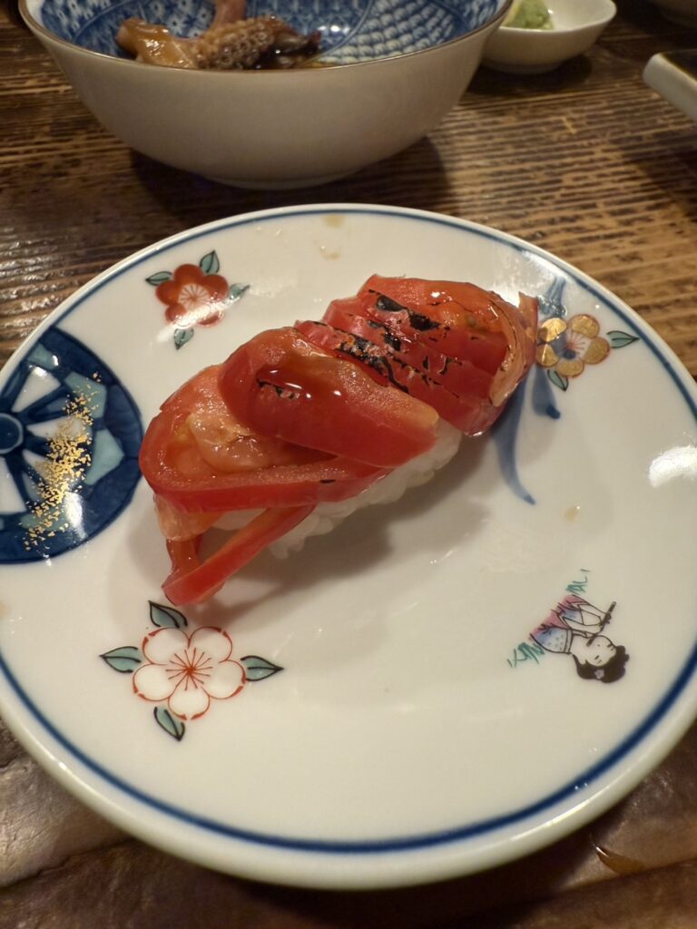 野菜が大好きな親方が握る トマトのお寿司