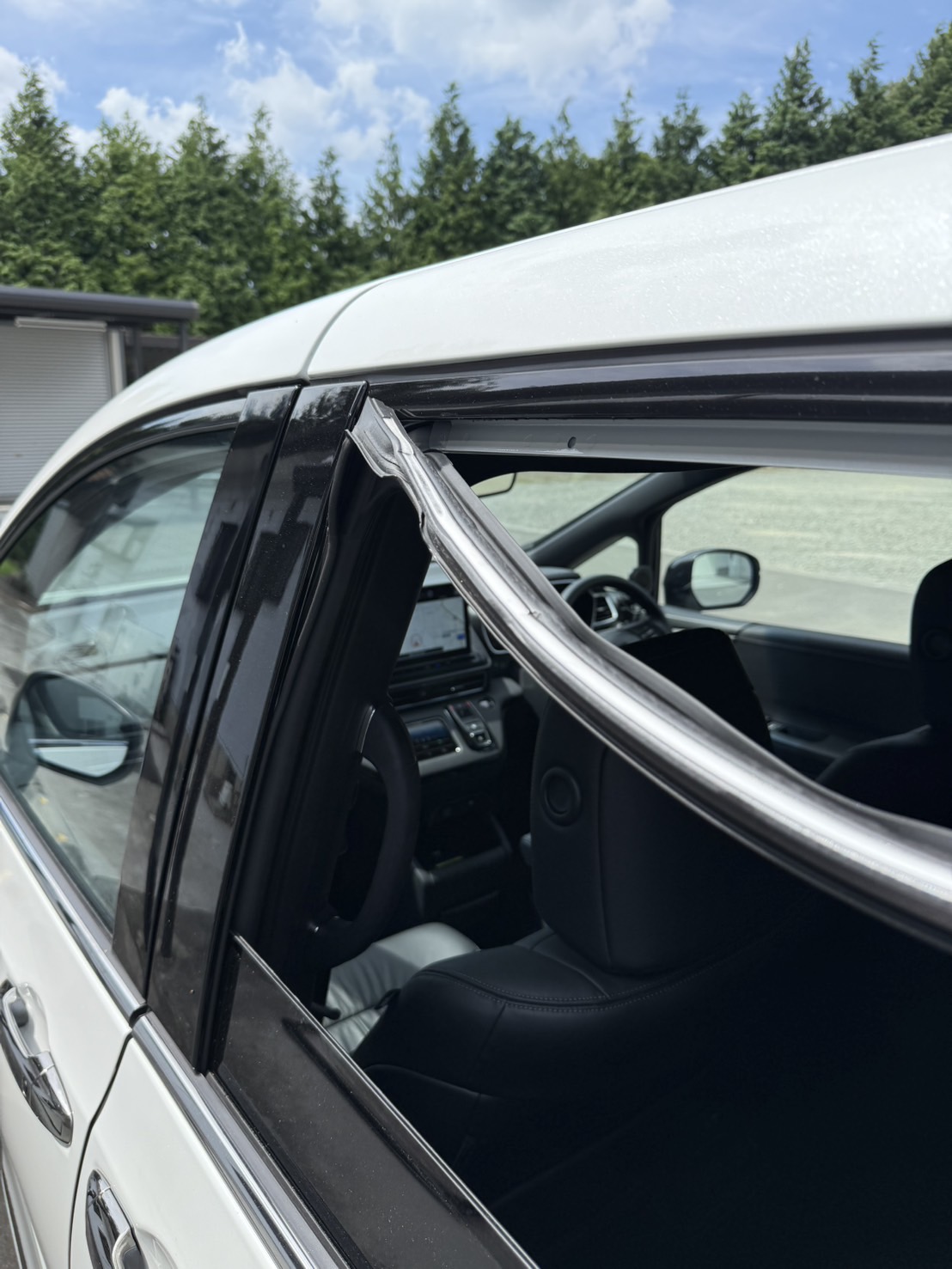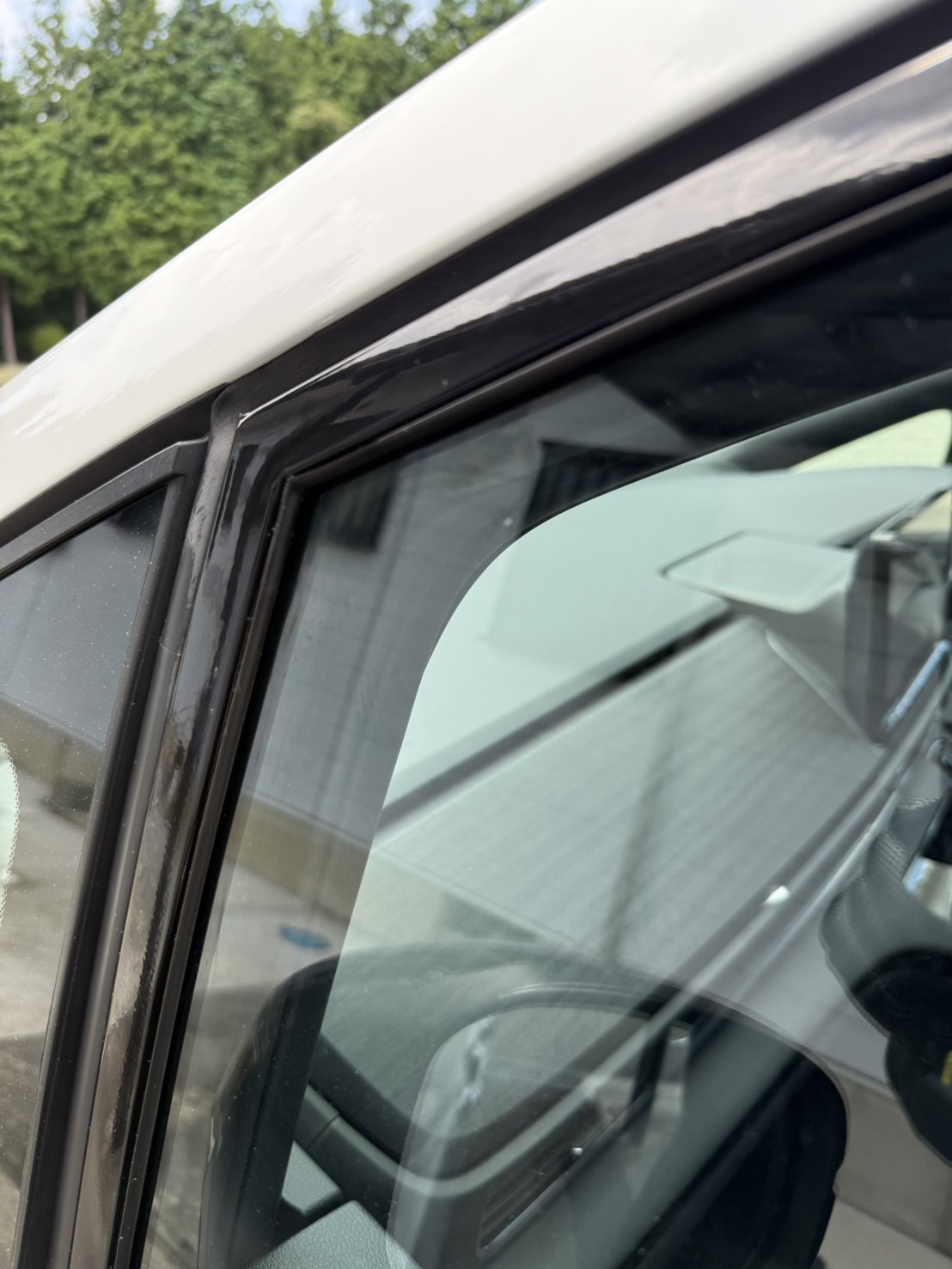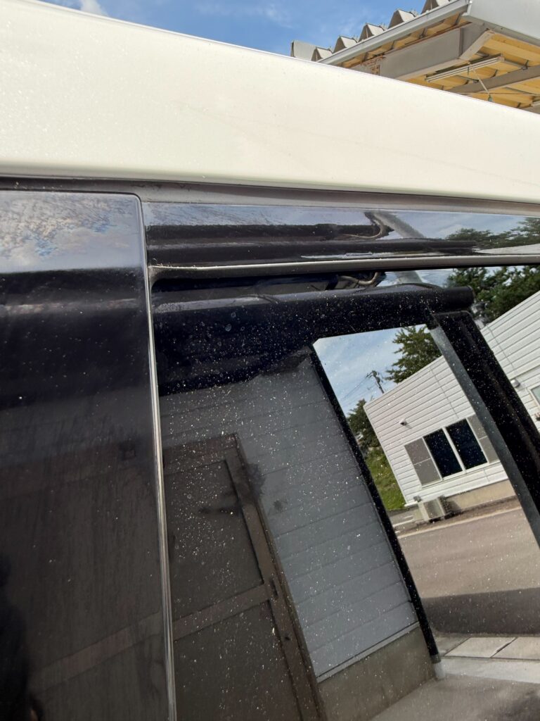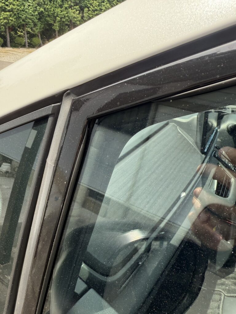以前にも書きましたが ドアバイザーの金具嚙み込みで 左側の窓2ヵ所でウィンドパッキンが変形しておりました