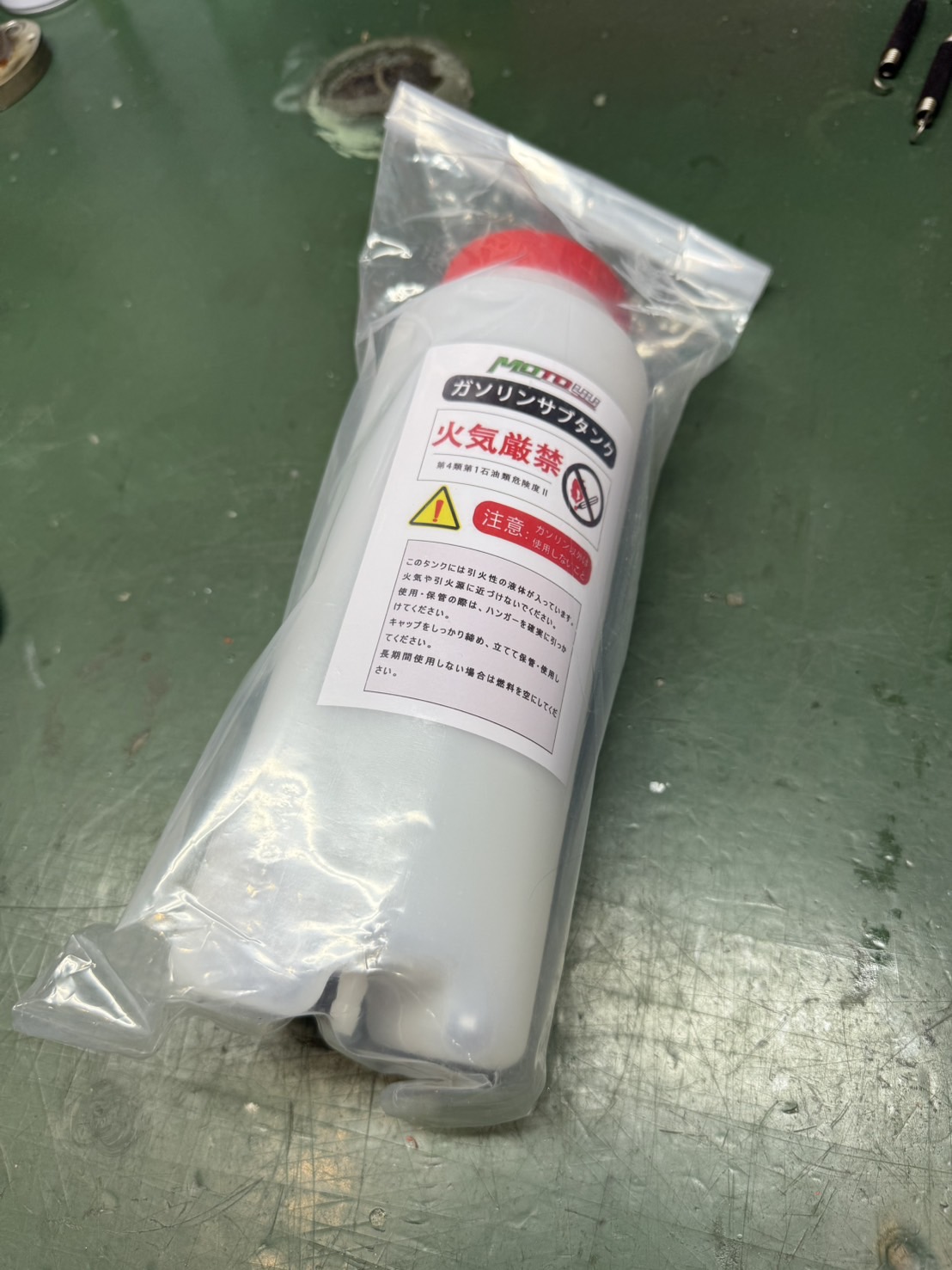 いつも 適当なオイルタンクを即席ガソリンタンクにしていたのですが これを機に点滴タイプをポチり