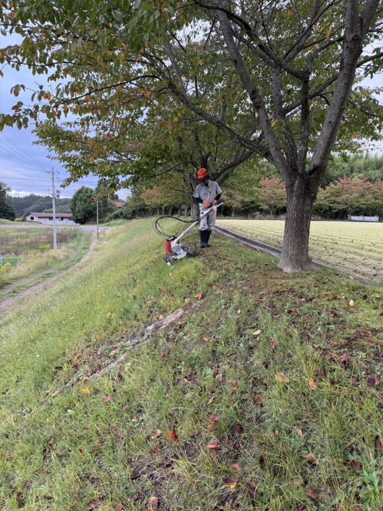 こちらの斜面は 桜の木の根がところどころ飛び出しているので 機械の操作が煩雑になります