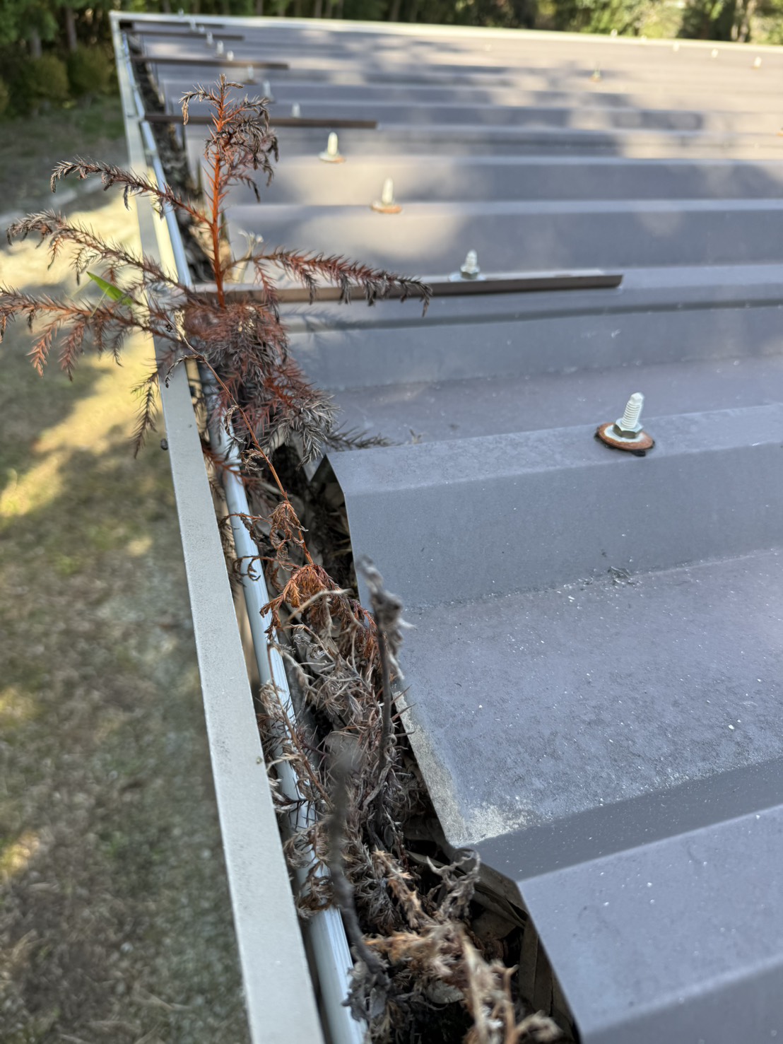 枯葉が積もり そして詰まり 草や小さな木まで生えていました