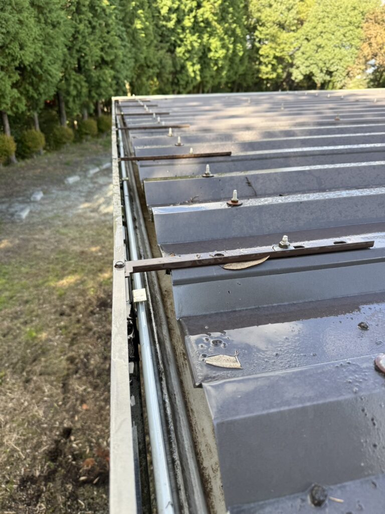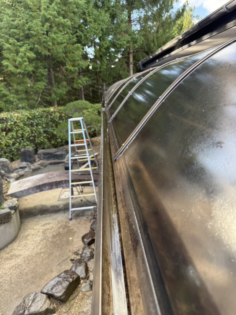 会社に戻り ツナギに着替えて天気の良いうちに雨どいの清掃作業